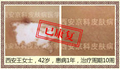 经过治疗,患者病灶消除,皮损消失,自体黑色素激活并得以长期性培植皮层,查体各项指标恢复正常,患者精神状态良好,复发因素基本排除。