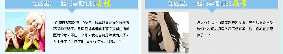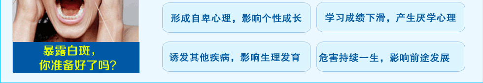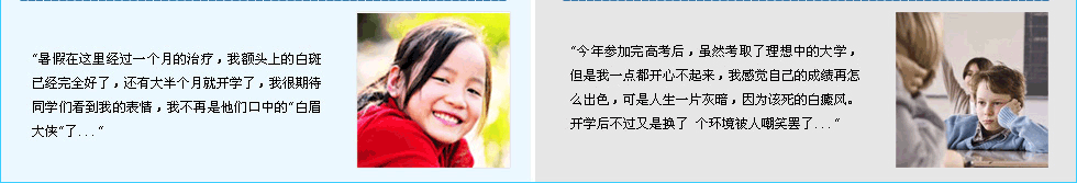 炎炎夏日逐渐褪去高温的侵袭,九月金秋新的学期即将到来,新的学业生活也将拉开帷幕。这是一个令很多学子们期待的时刻,然而却有一部分学生不愿开学,因为白癜风让他们抬不起头。他们害怕面对同学、老师的眼光,害怕别人的嘲笑、歧视。白癜风给莘莘学子带来的危害显而易见,只有正确的治愈了白癜风才能快快乐乐的去上学。那么,你的白癜风治好了吗?你是否准备好将白斑暴露在校园中?