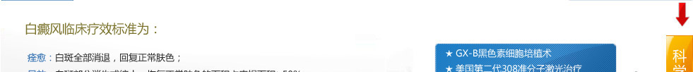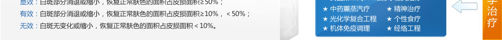 四维分诊模式,能够有效的针对患者的皮损部位,利用先进尖端的仪器和操作技术以点为对象,不需要大面积的盲目用药,从用量上也减轻患者的经济负担,有目的的对症下药,在时间上减少患者治疗周期,缩短患者治愈的时间,使患病皮肤白斑迅速得到控制,最后达到皮肤黑色素代谢功能恢复正常,避免过长的治疗周期导致患者从因为经济和时间问题放弃治疗。